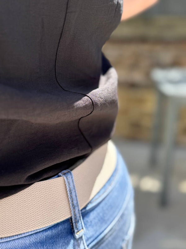 Une ceinture unie et minimaliste, idéale pour accompagner tous les styles, des looks modernes aux tenues classiques.