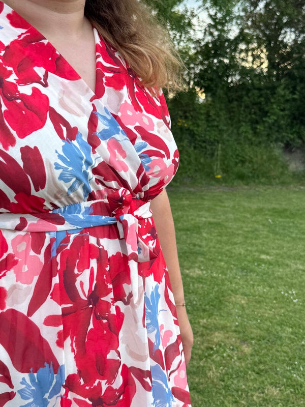 Un vrai coup de coeur pour cette robe longue rouge à fleurs, à la fois élégante et pleine de fraicheur🌸Son col V met joliment le décolleté en valeur, tandis que la taille est structurée avec une ceinture. Sa coupe fluide apporte de la légèreté, pour un confort du matin au soir. ☀️
