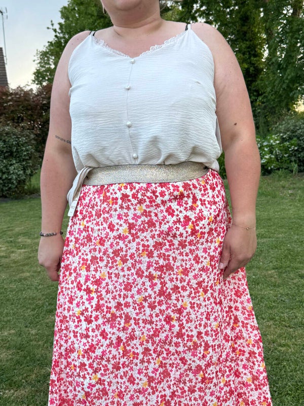 Élégante et en toute légereté, cette jupe longue plissée rouge à fleurs est un vrai coup de coeur pour les beaux jours.☀️Son tissu fluide accompagne chacun de vos mouvements avec douceur et féminité. Son motif fleuri apporte une touche de fraîcheur et romantisme à vos tenues, que ce soit pour une sortie décontractée ou une occasion particulière.✨ Grâce à sa taille élastique, elle s'adapte confortablement à votre silhouette tout en mettant la taille en valeur. Facile à porter et à associer elle se marie aussi bien avec un tee-shirt simple qu'un jolie top habillé.🌼