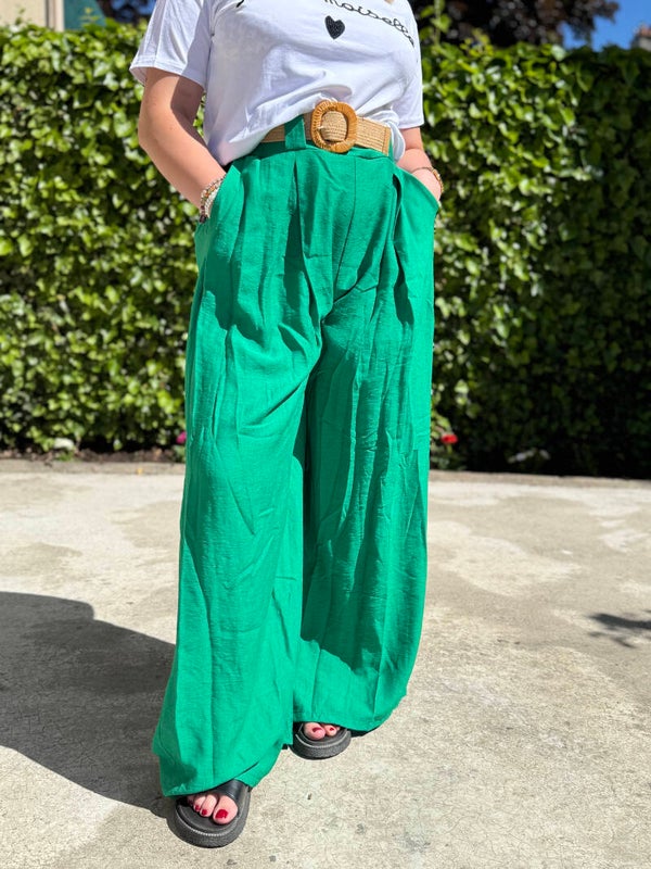 Optez pour le parfait équilibre entre confort et élégance avec ce pantalon fluide vert. Pratique et stylé , il est doté de poches sur les côtés pour un confort au quotidien.✨
