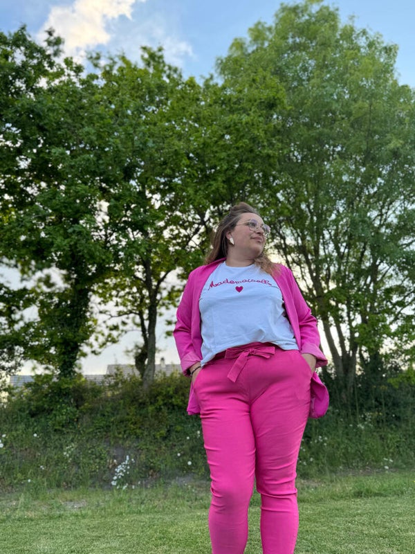 Alliez confort et élégance avec notre pantalon à noeud fuchsia. Conçu dans une matière extensible, il épouse parfaitement votre silhouette tout en offrant une liberté de mouvement optimal. Sa taille élastique avec noeud décoratif ajoute une touche féminine et stylée.🤍